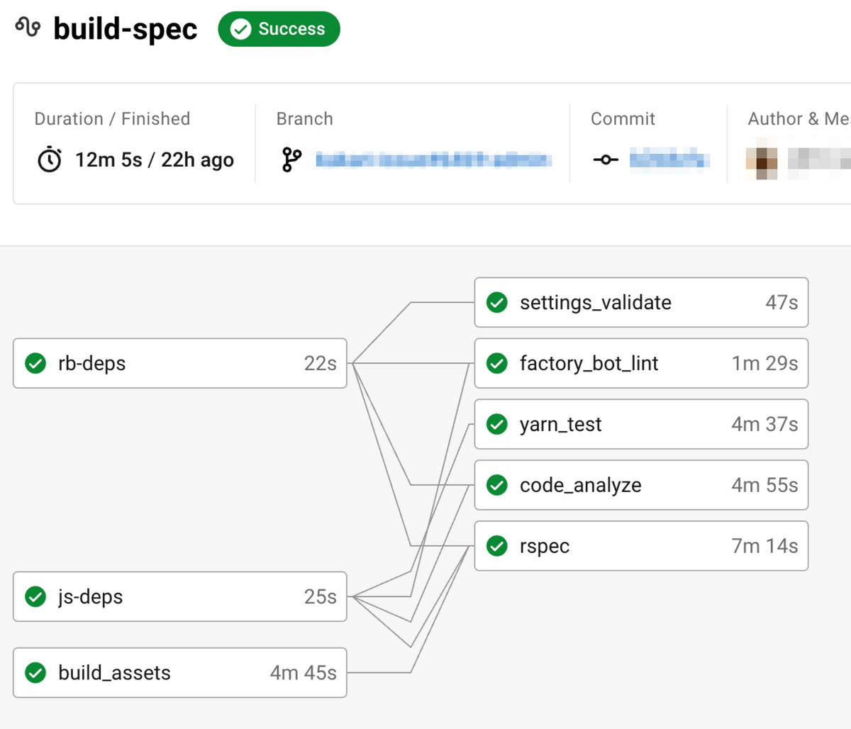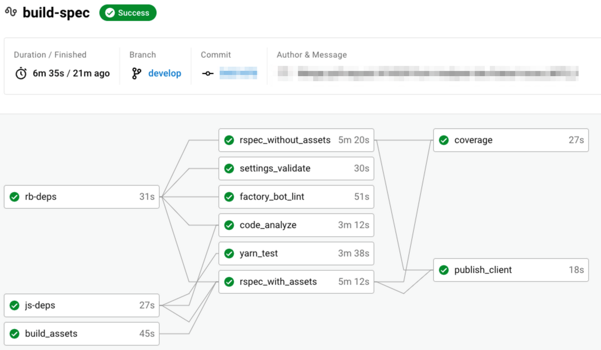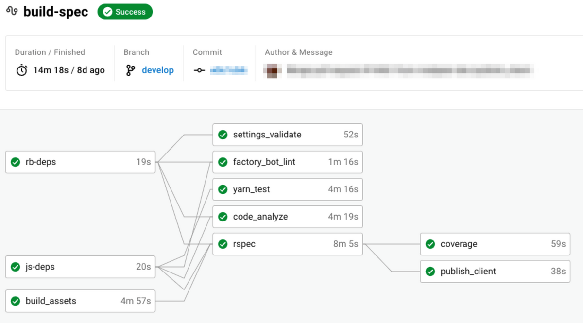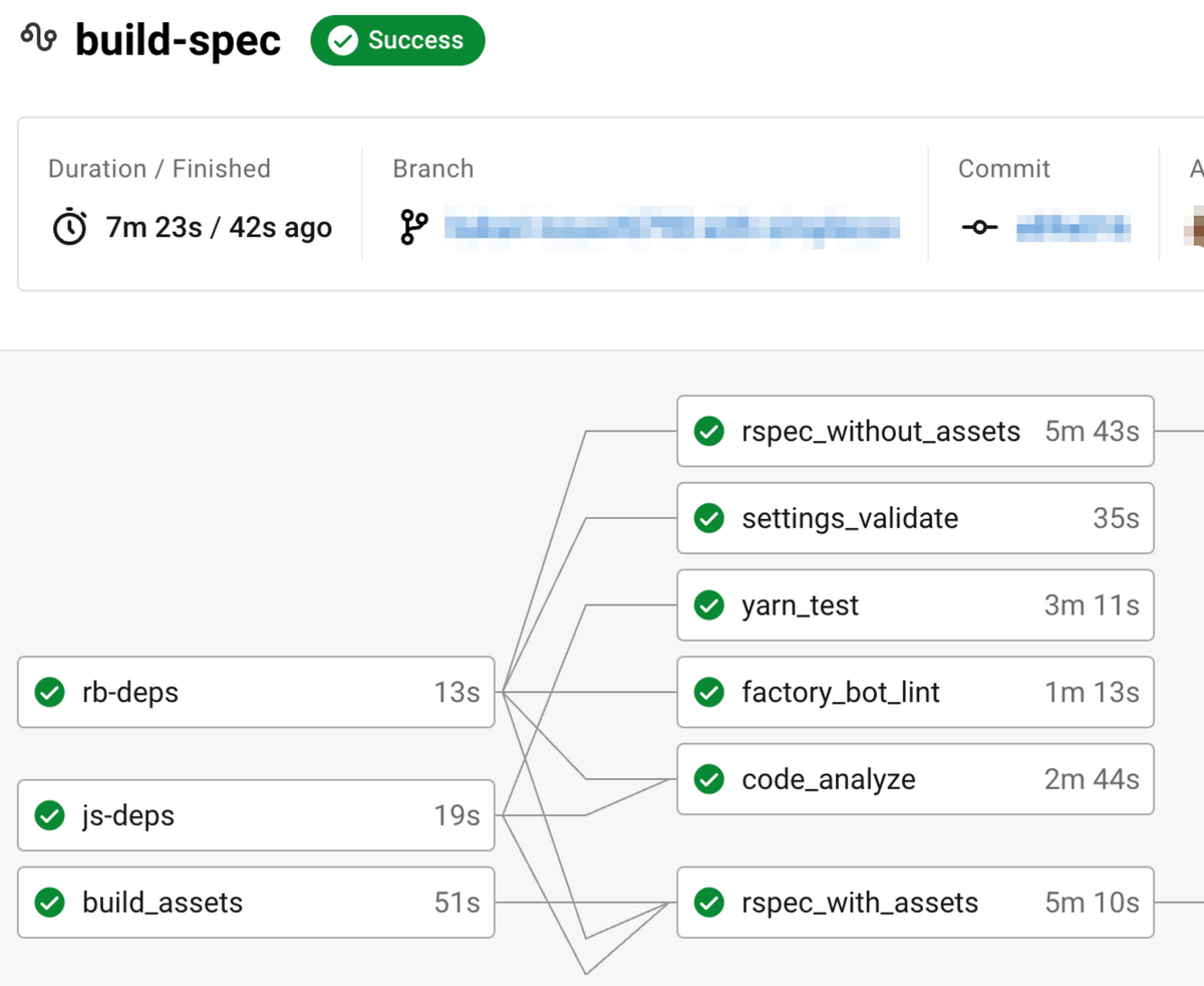 RSpec実行Jobを「webpack buildが必要なSystem Spec rspec_with_assets」と「それ以外(Model Specなど) rspec_without_assets」の二つに分割し、「時間がかかるWebPack Buildを待たずに rspec_without_assets を開始」することで全体の総時間を短縮する試みです。